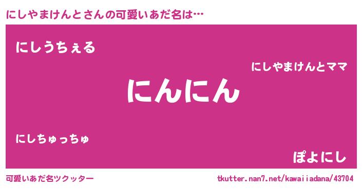 | 恥ずかしいあだ名 | 『プリティーにしやまけんと』『にしちん』 |