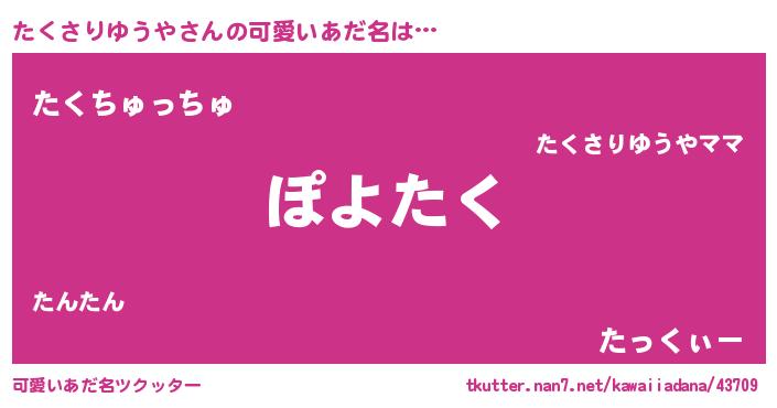 | ヘコむあだ名 | 『たくお』『たくさりゆうや(小並感)』 |