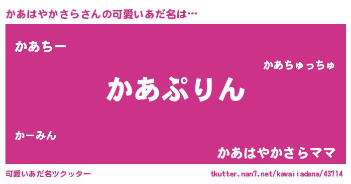 | 女子向けラノベタイトル風あだ名 | 『かあはやかさらの玉の輿計画!』 |