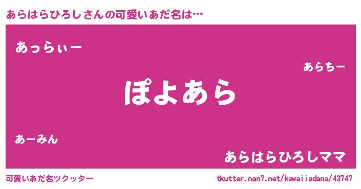 | ポケモン風あだ名 | 『アーライ』『ヒアラハラヒロシ』 |