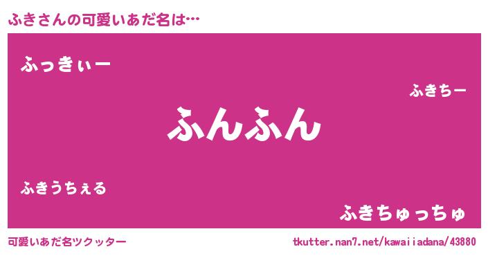 | ポケモン風あだ名 | 『フキチュウ』『ヒフキ』『フキダネ』 |