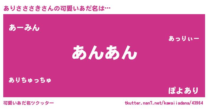 | 意味不明あだ名 | 『ペロリンありさささき』 |