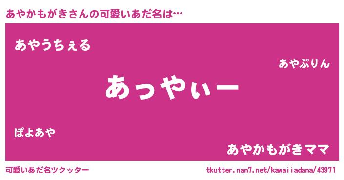 | 男性向けラノベタイトル風あだ名 | 『あやかもがきの嫁は女の子じゃないと思った?』 |