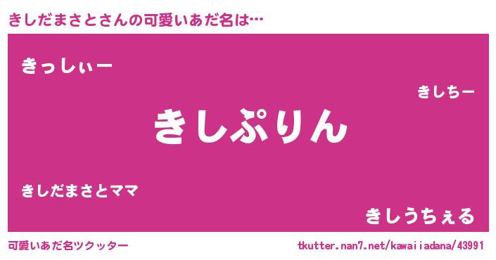 | 男性向けラノベタイトル風あだ名 | 『きしだまさと~年齢イコール彼女いない歴の魔法使い~』 |