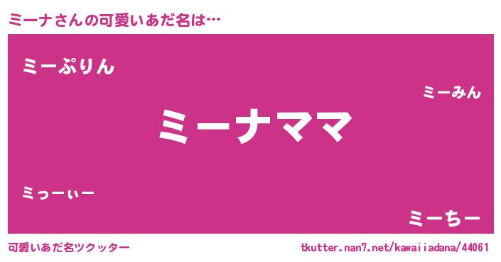 | 意味不明あだ名 | 『永久保存ミーナ』『ヨモギ科ミーナ属』 |