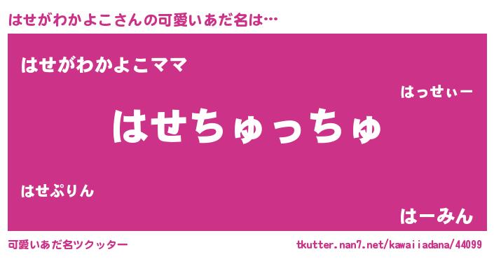 | ヘコむあだ名 | 『はせがわかよこ(苦笑)』『はせっ子』 |