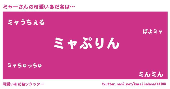 | ヘコむあだ名 | 『ミャにゅー』『ミャー(笑)』『豆乳』 |