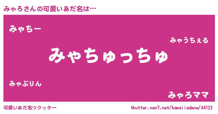 | ヒーロー風カッコイイあだ名 | 『愛の使者みゃろ』『ウルトラみゃろマン』 |