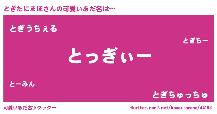 | ポケモン風あだ名 | 『ヒトギタニマホ』『トギゴンZ』 |