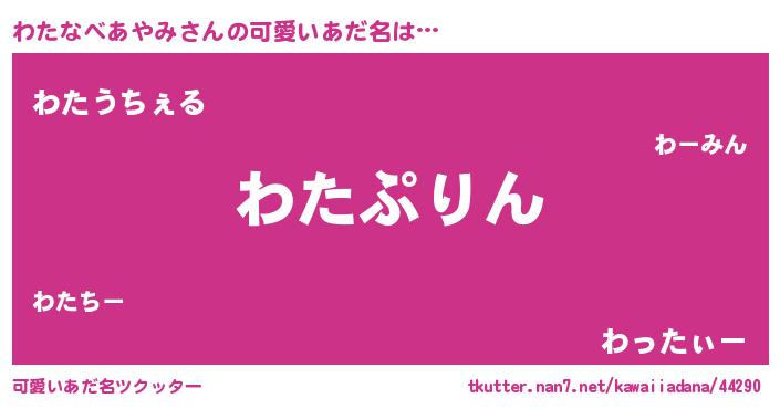 | ヘコむあだ名 | 『わたっぺ』『なまこ酢』 |