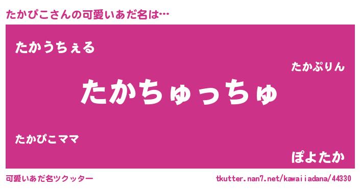 | 女子向けラノベタイトル風あだ名 | 『死神たかぴこの再婚』『闇のたかぴこ』 |