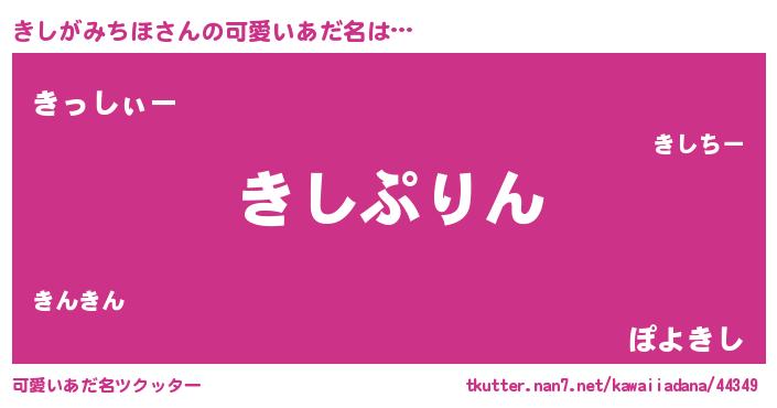 | 女子向けラノベタイトル風あだ名 | 『きしがみちほの玉の輿計画!』 |
