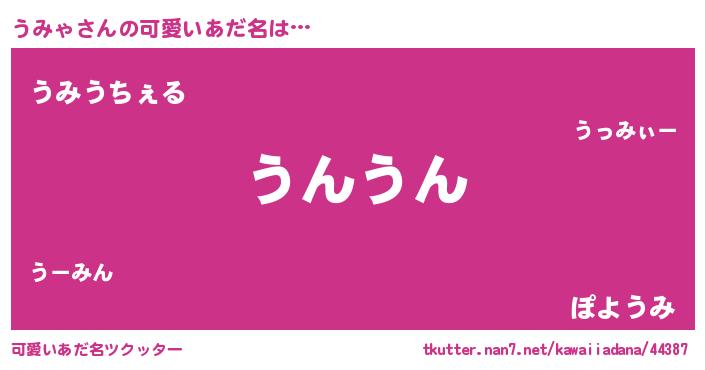 | ヘコむあだ名 | 『うみもー』『うみっぺ』『酢こんぶ』 |