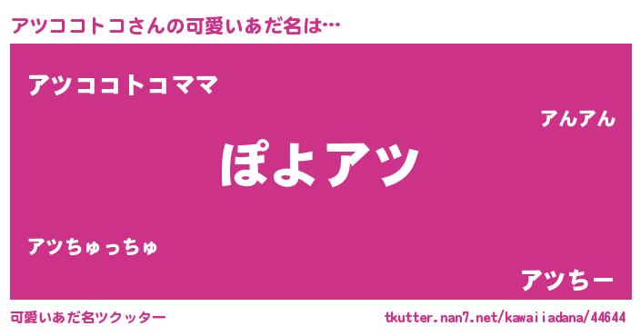| ヒーロー風カッコイイあだ名 | 『仮面アツダー』『ネオアツココトコ』 |