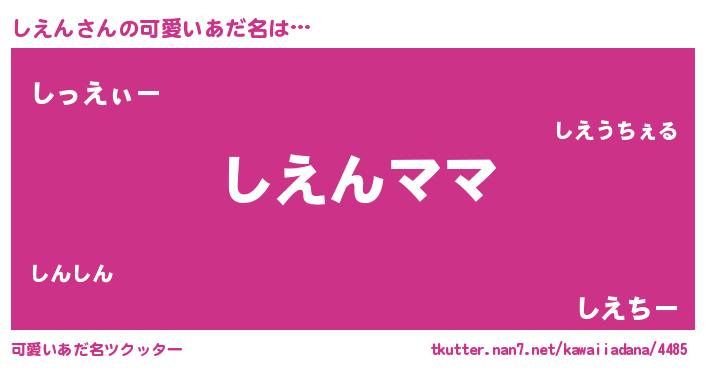 | ヘコむあだ名 | 『しえん(爆)』『しえぷりん』 |