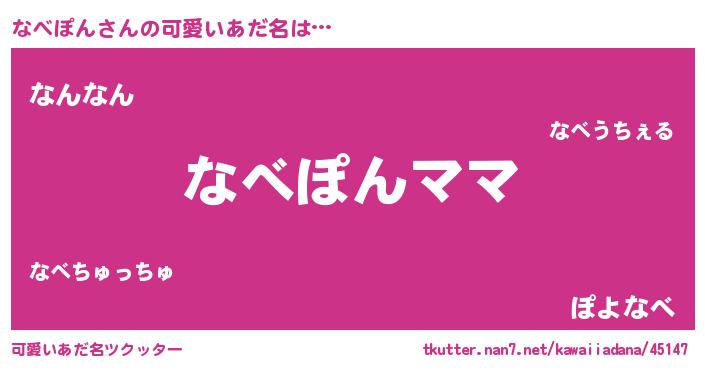 | 意味不明あだ名 | 『永久保存なべぽん』『ペロリンなべぽん』 |
