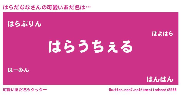 | 恥ずかしいあだ名 | 『ハラダナナデラックス』『ハラリンリン』 |