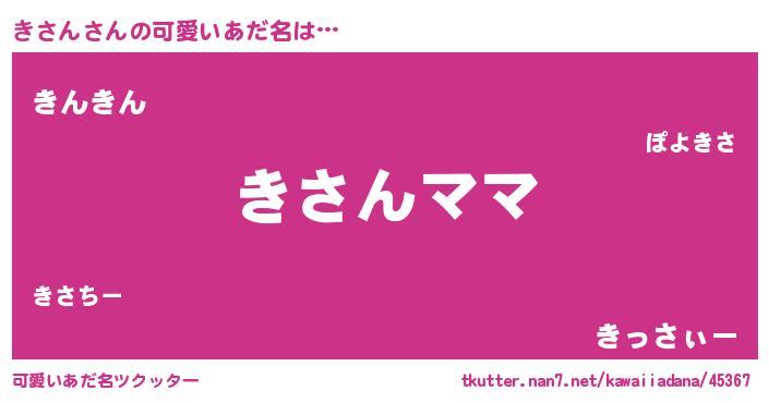 | 意味不明あだ名 | 『永久保存きさん』『ペロリンきさん』 |