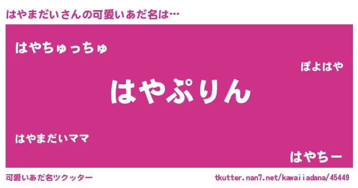ヘコむあだ名 | 『豆乳』『はやまだい(震え声)』 |