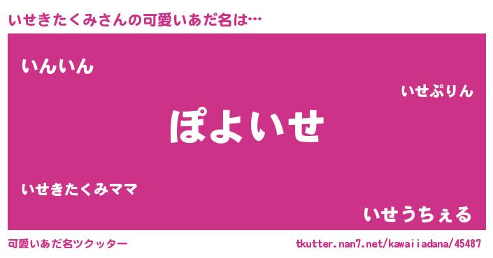 | 恥ずかしいあだ名 | 『プリティーいせきたくみ』『いせちん』 |