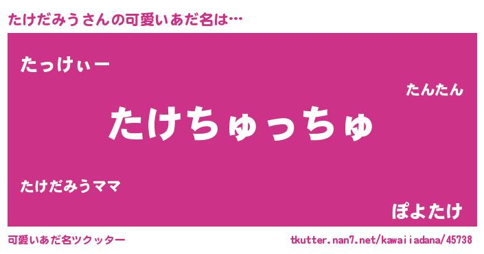 | 男性向けラノベタイトル風あだ名 | 『ノーゲーム・ノータケダミウ』 |