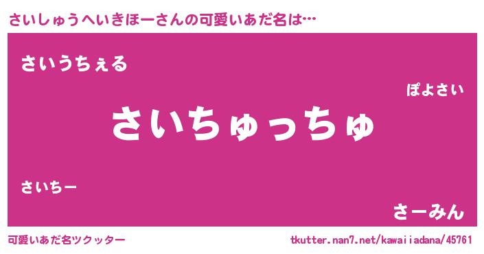 | ヒーロー風カッコイイあだ名 | 『友情の使者さいしゅうへいきほー』 |
