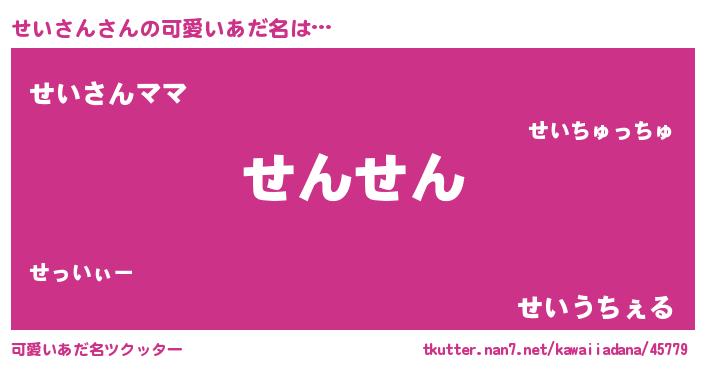| 意味不明あだ名 | 『ペロリンせいさん』『永久保存せいさん』 |