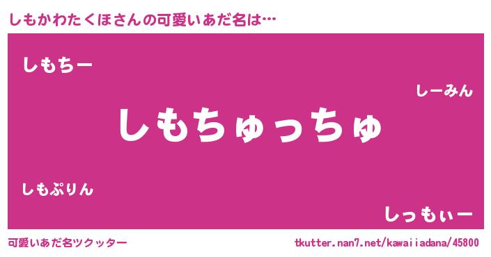 | 女子向けラノベタイトル風あだ名 | 『死神しもかわたくほの再婚』 |