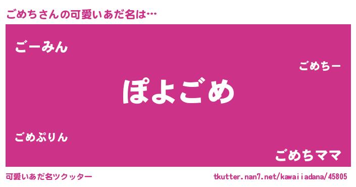 | ヘコむあだ名 | 『ごめち(笑)』『豆乳』『ごめぷりん』 |