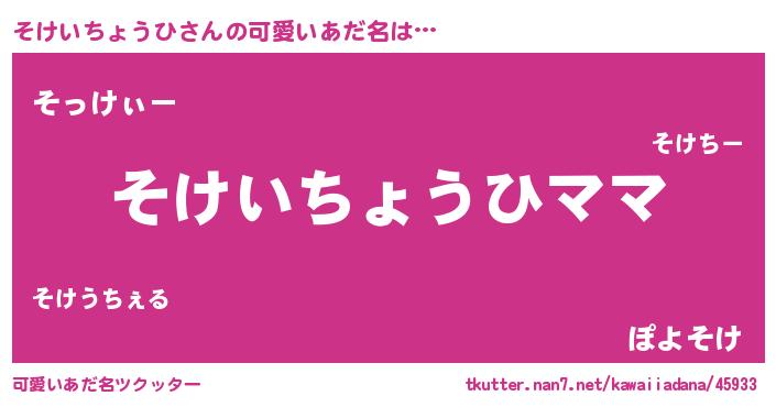 | ヘコむあだ名 | 『そけいちょうひ(笑)』『そけを』 |