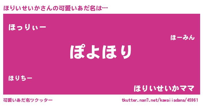 | 意味不明あだ名 | 『住所不定無職ほりいせいか(14歳)』 |