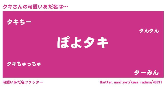 | 意味不明あだ名 | 『住所不定無職タキ(2歳)』『ペロリンタキ』 |