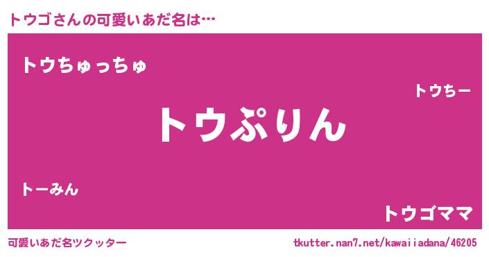 | 男性向けラノベタイトル風あだ名 | 『転生したらトウゴだった件』 |