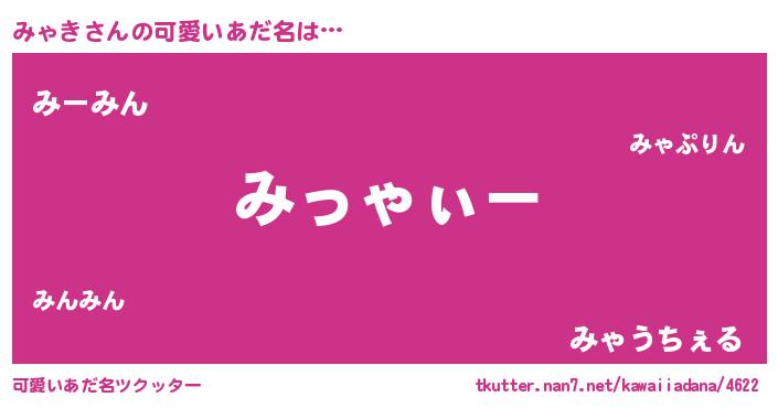 | 女子向けラノベタイトル風あだ名 | 『みゃき様がみてる』 |