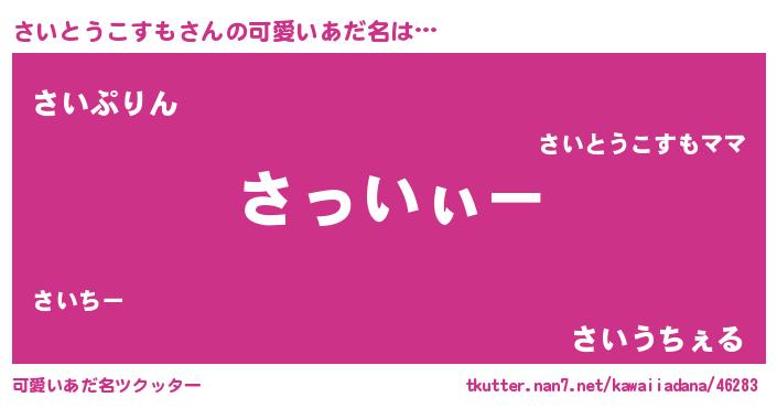 | ヘコむあだ名 | 『さい太郎』『さいとうこすも(笑)』 |