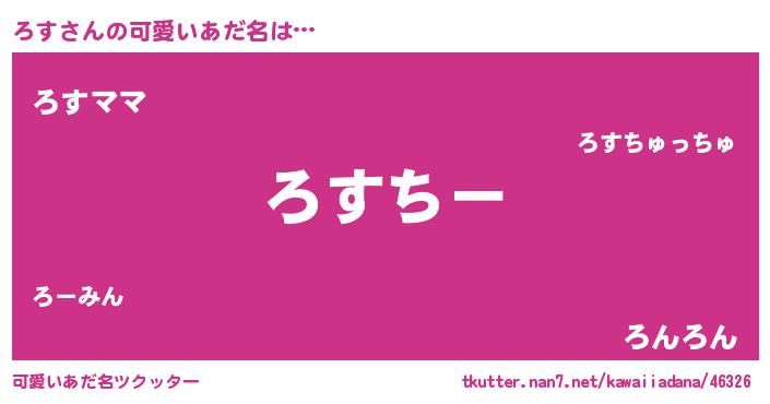 | 女子向けラノベタイトル風あだ名 | 『ろすの雑貨屋さん』『ろす恋絵巻』 |