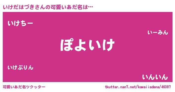 | 恥ずかしいあだ名 | 『いけっちょ』『プリティーいけだはづき』 |