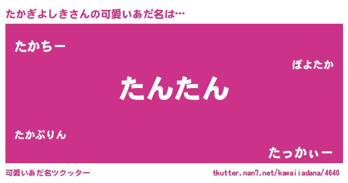| 恥ずかしいあだ名 | 『プリティーたかぎよしき』『たかっちょ』 |