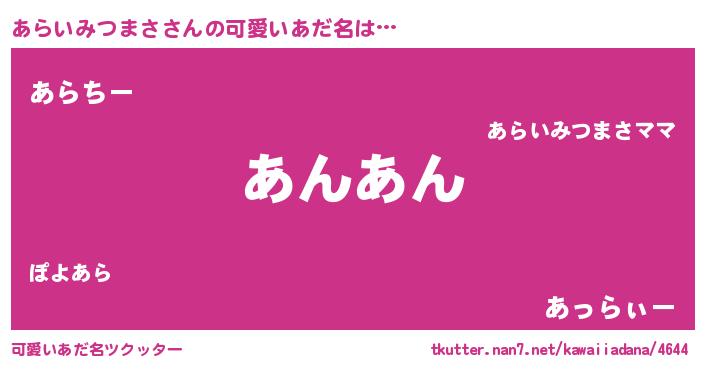 | ヒーロー風カッコイイあだ名 | 『スーパーアライミツマサ』 |