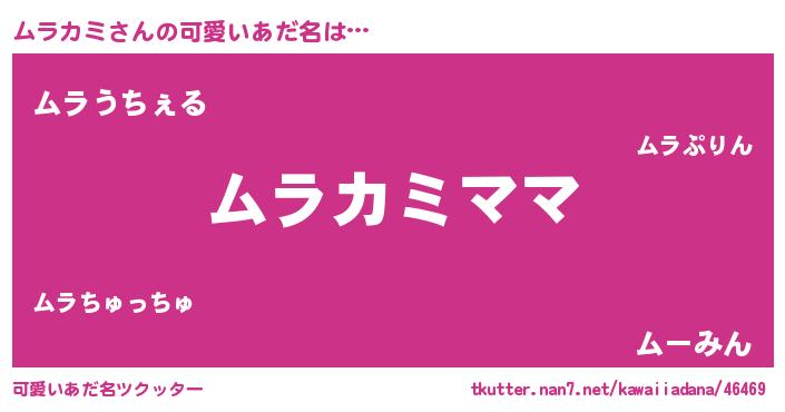 | 女子向けラノベタイトル風あだ名 | 『ムラカミの契約王妃』『ムラカミ恋絵巻』 |