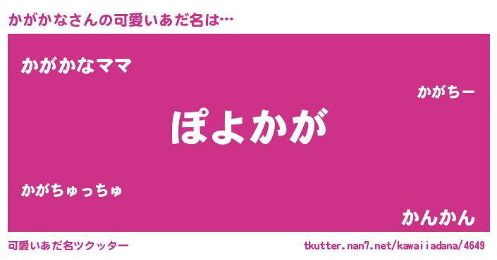| ヘコむあだ名 | 『かがかな(震え声)』『かがにー』 |
