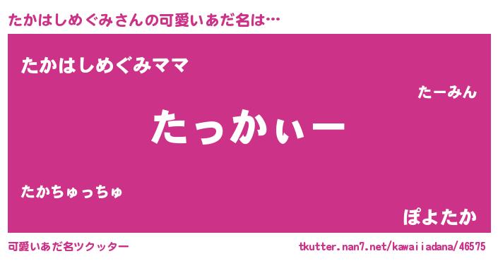 | ポケモン風あだ名 | 『ヒタカハシメグミ』『ゼニタカ』 |