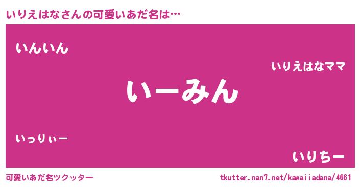 | ヒーロー風カッコイイあだ名 | 『スーパーイリエハナ』『ネオイリエハナ』 |