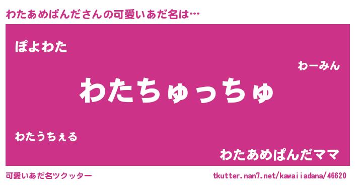 | ヘコむあだ名 | 『わたあめぱんだ(小並感)』『わたっふぃ~』 |
