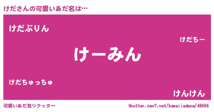 | 男性向けラノベタイトル風あだ名 | 『緋弾のケダ』『ケダアートオンライン』 |