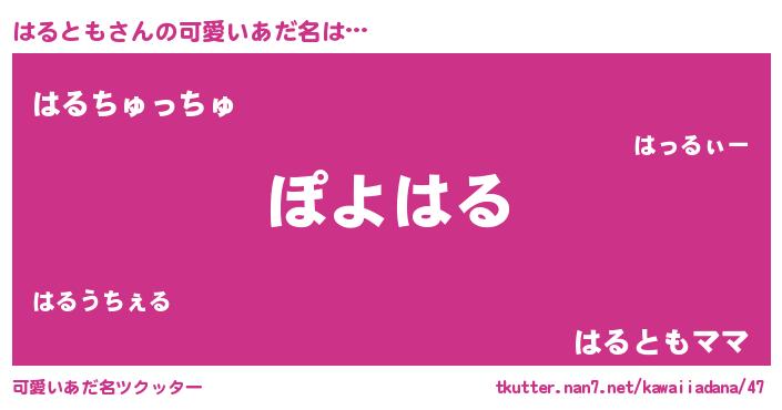 | 男性向けラノベタイトル風あだ名 | 『この素晴らしい世界にはるともを!』 |