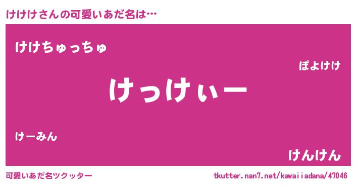 | ヒーロー風カッコイイあだ名 | 『炎刃騎士ケケ』『正義の使者けけけ』 |