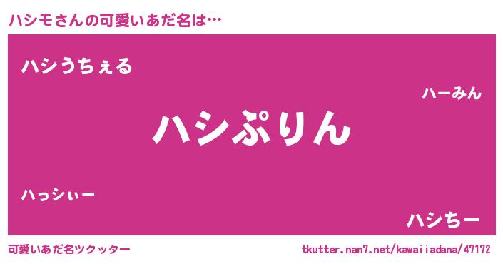 | 意味不明あだ名 | 『なめこ科ハシモ属』『自称ハシモ』 |