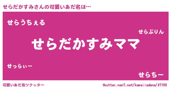 | 恥ずかしいあだ名 | 『せらちん』『セラダカスミデラックス』 |