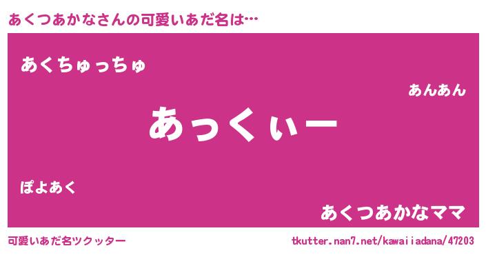| 意味不明あだ名 | 『とにかく怪しいあくつあかな』 |